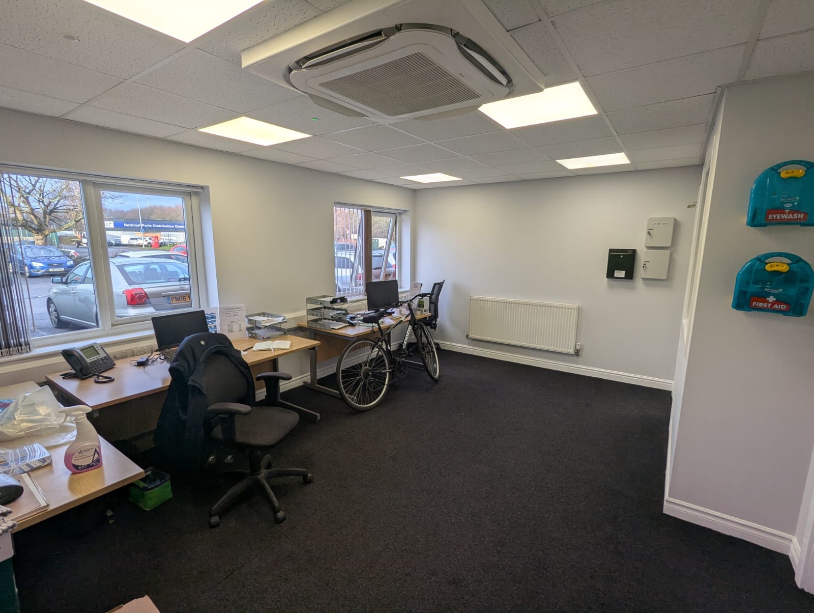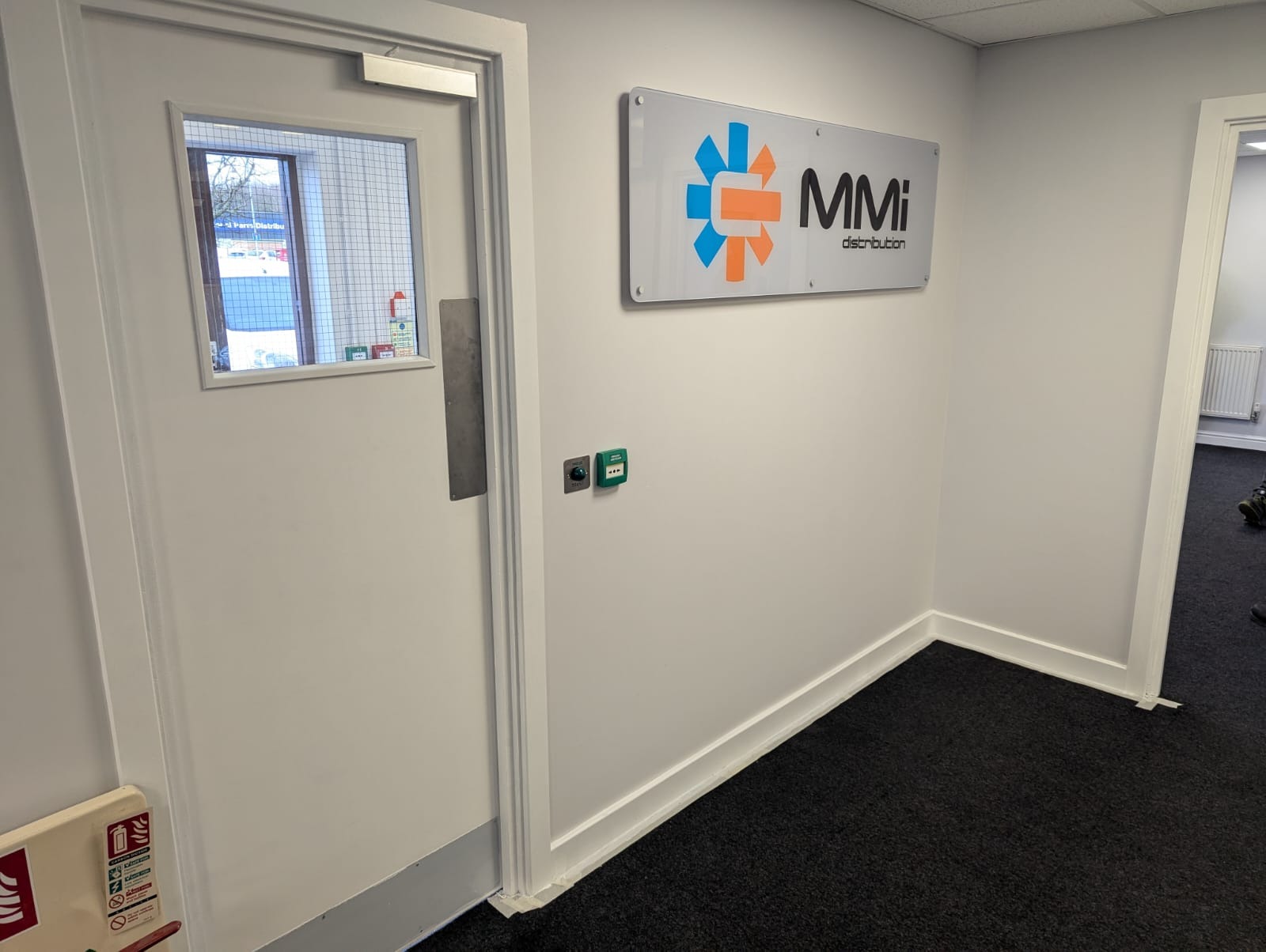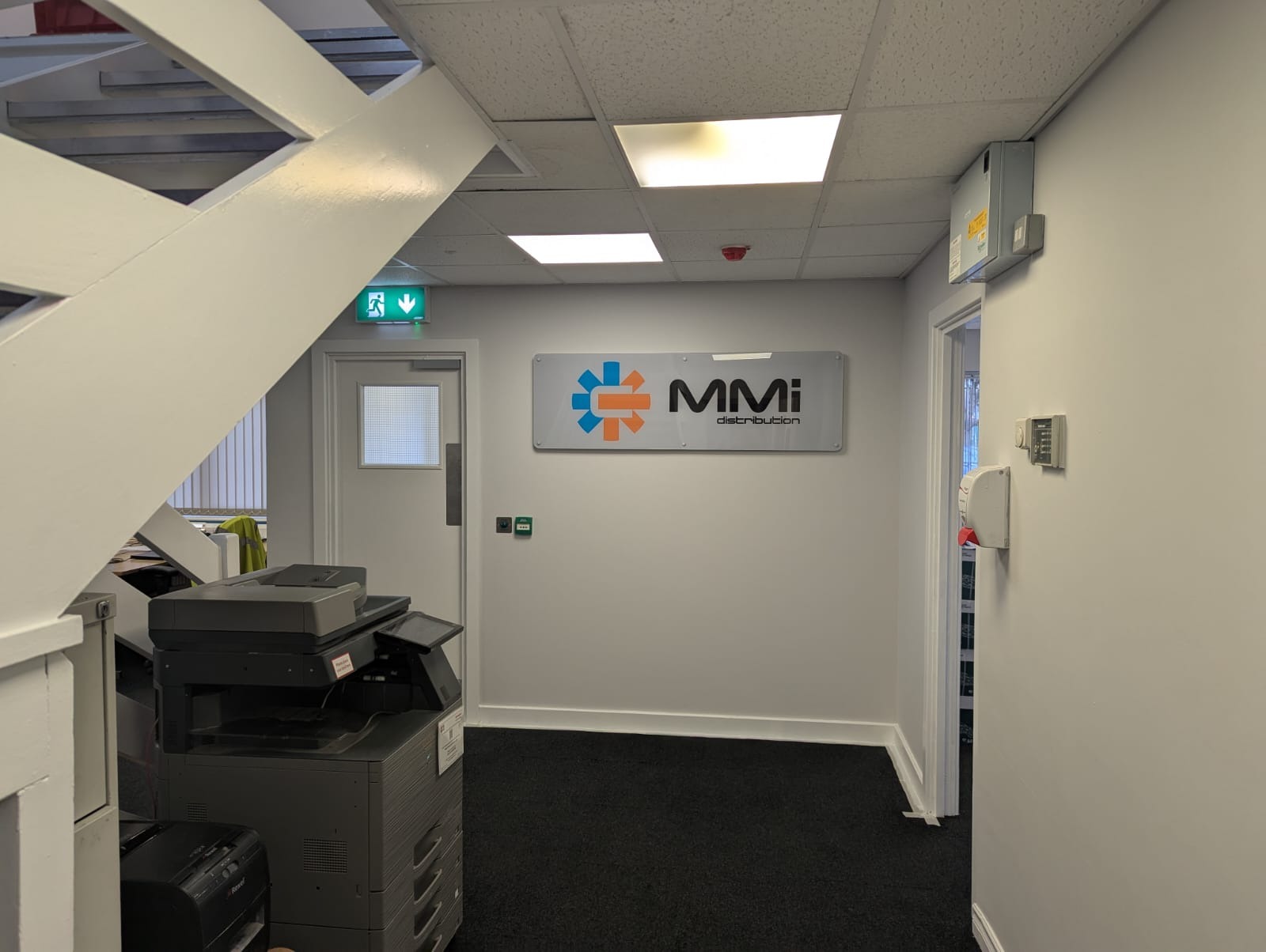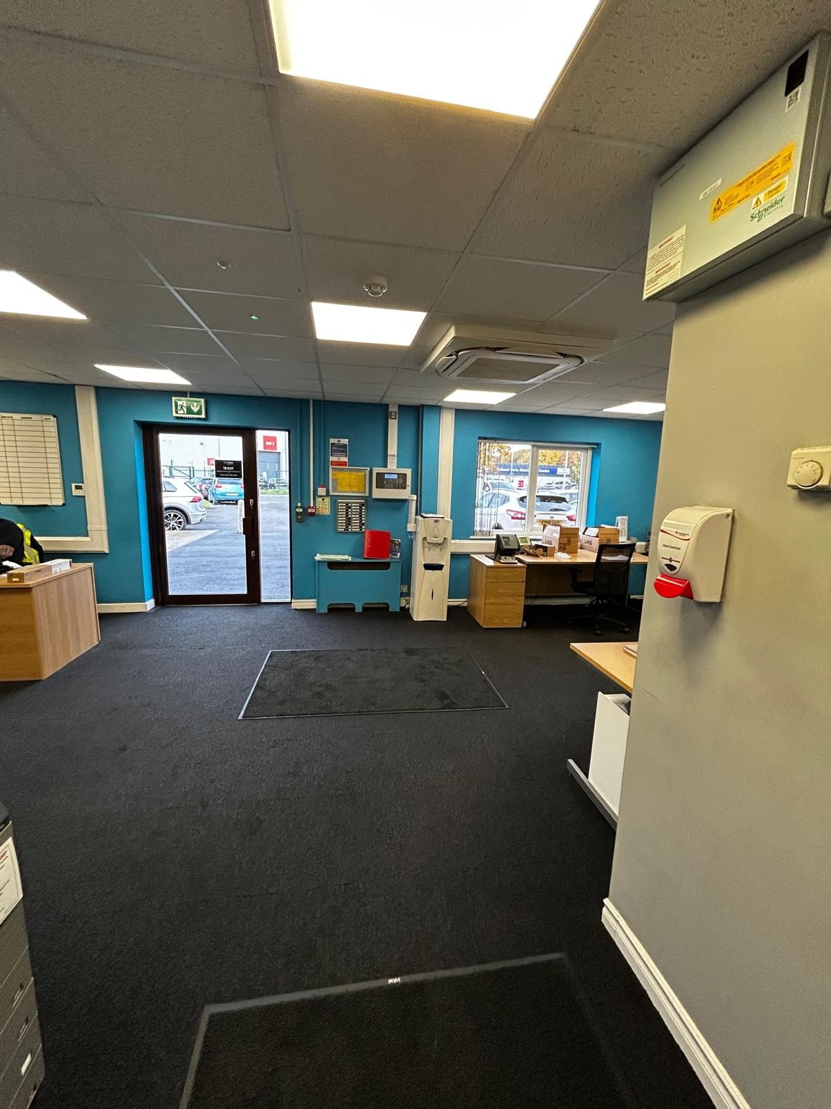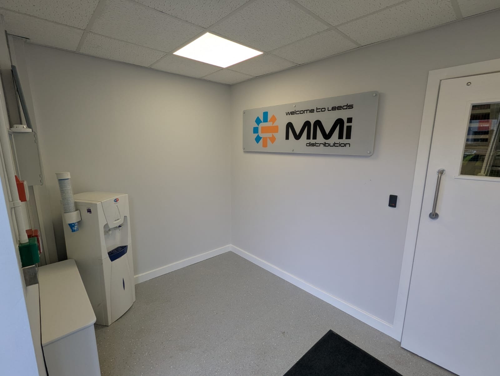 The management at MMID Leeds contacted us with an issue they had. They had visitors/ foot traffic walking straight into their main offices causing disruptions as there was no separation between the main entrance door and the main offices. Before we could start erecting partition walls, we had to relocate an AC ceiling cassette unit and install a new wall mounted AC system as this space will become divided. Once this was complete, we erected stud partition walls to create a reception space separate from the main office. To control the access of the new door coming into the building, we installed a fob access system, with enough fobs for everyone that needed them. To finish this space off, we painted throughout, removing the bright coloured walls to give it a more professional look and added some stand-off signs.